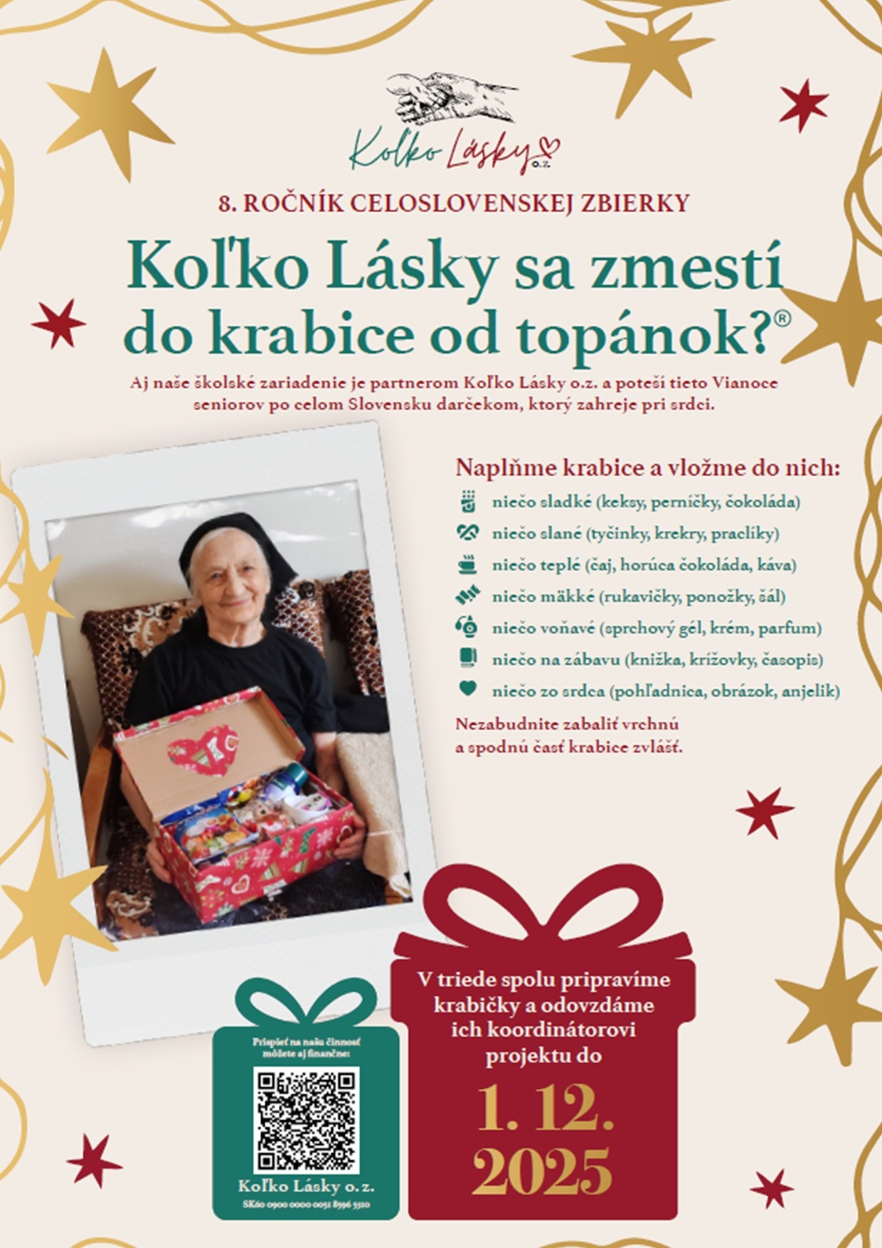 21. 10. 2025Ďakujeme všetkým našim žiakom, zamestnancom aj rodičom za podporu dobrej a hodnotnej veci. Aj keď sa ochotná pomoc nedá počítať a porovnávať v číslach, teší nás rekordný výťažok tejto zbierky v našej škole.